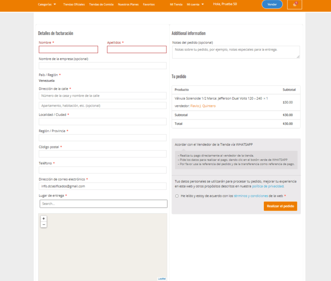 • – Completa el formulario de envió para  que el vendedor o tienda puedan enviar mas rápido su orden.